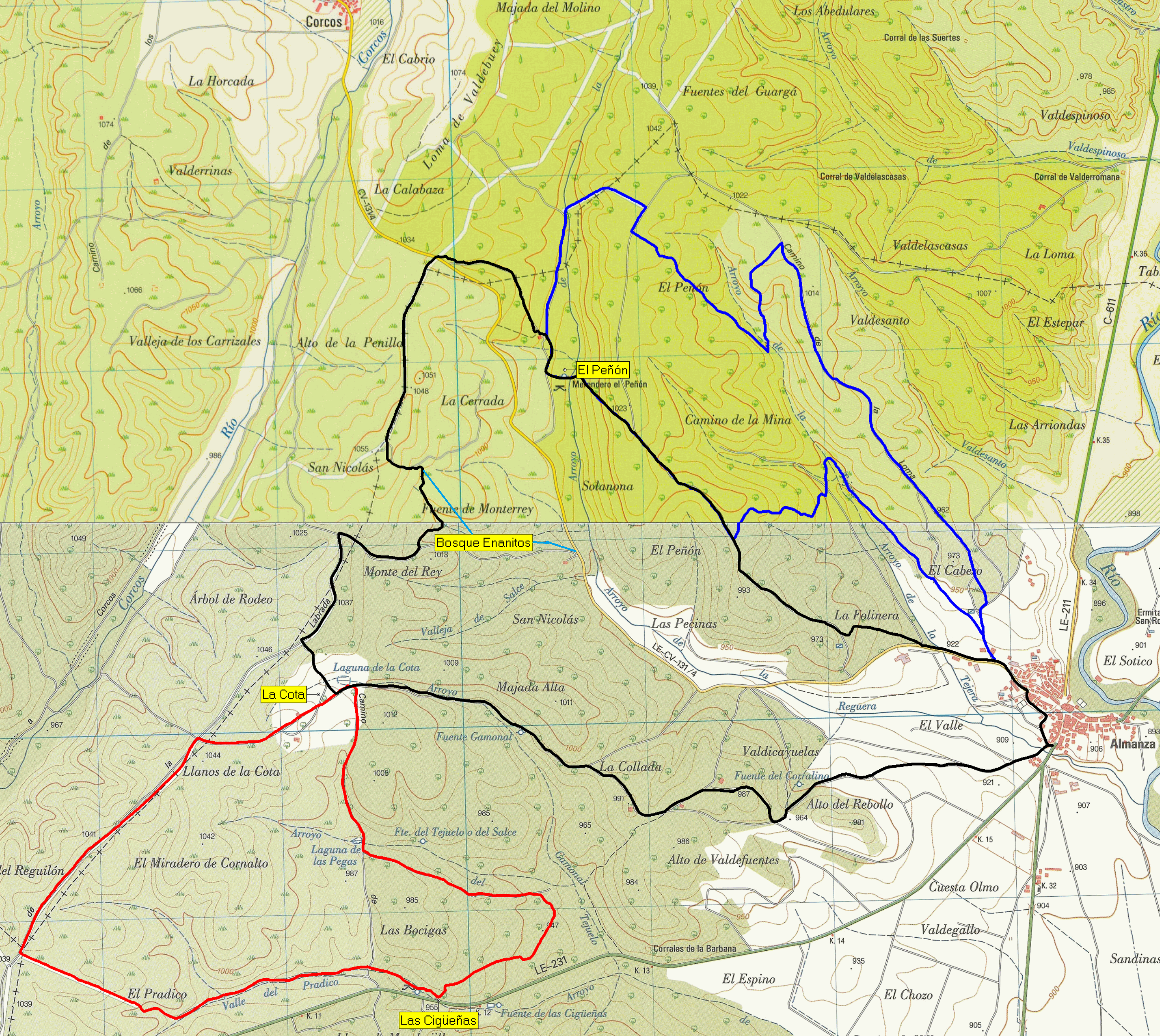 coincidimos con la ruta roja (Senda de los Lobos, que viene de la